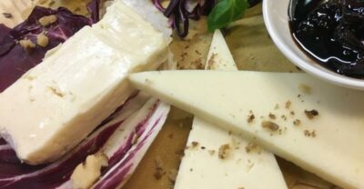 Fonduta di formaggio (gorgonzola,pecorino e grana) con tagliata di pollo, flatiron e filone di maiale